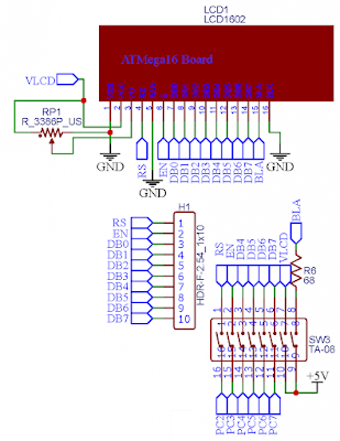 This board allow an external connection to the outside device via many pre-soldered connectors/headers. The main ATMega16 chip with its 40-pin wires to a 2×20 on-board male header. Other headers are,